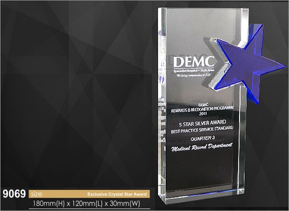 โล่รางวัล คริสตัล รหัส 9069 ถ้วยรางวัลที่เหมาะสำหรับงานเกียรติยศ ล้ำค่า ประกาศรางวัลบริษัท พนักงานดีเด่น