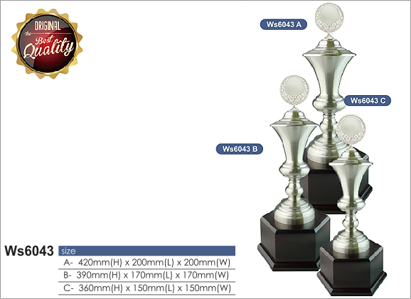 ถ้วยรางวัลซิลเวอร์ เกรดพรีเมี่ยม ใช้งานสำหรับการทำกิจกรรม ต่างๆ รหัส Ws6043